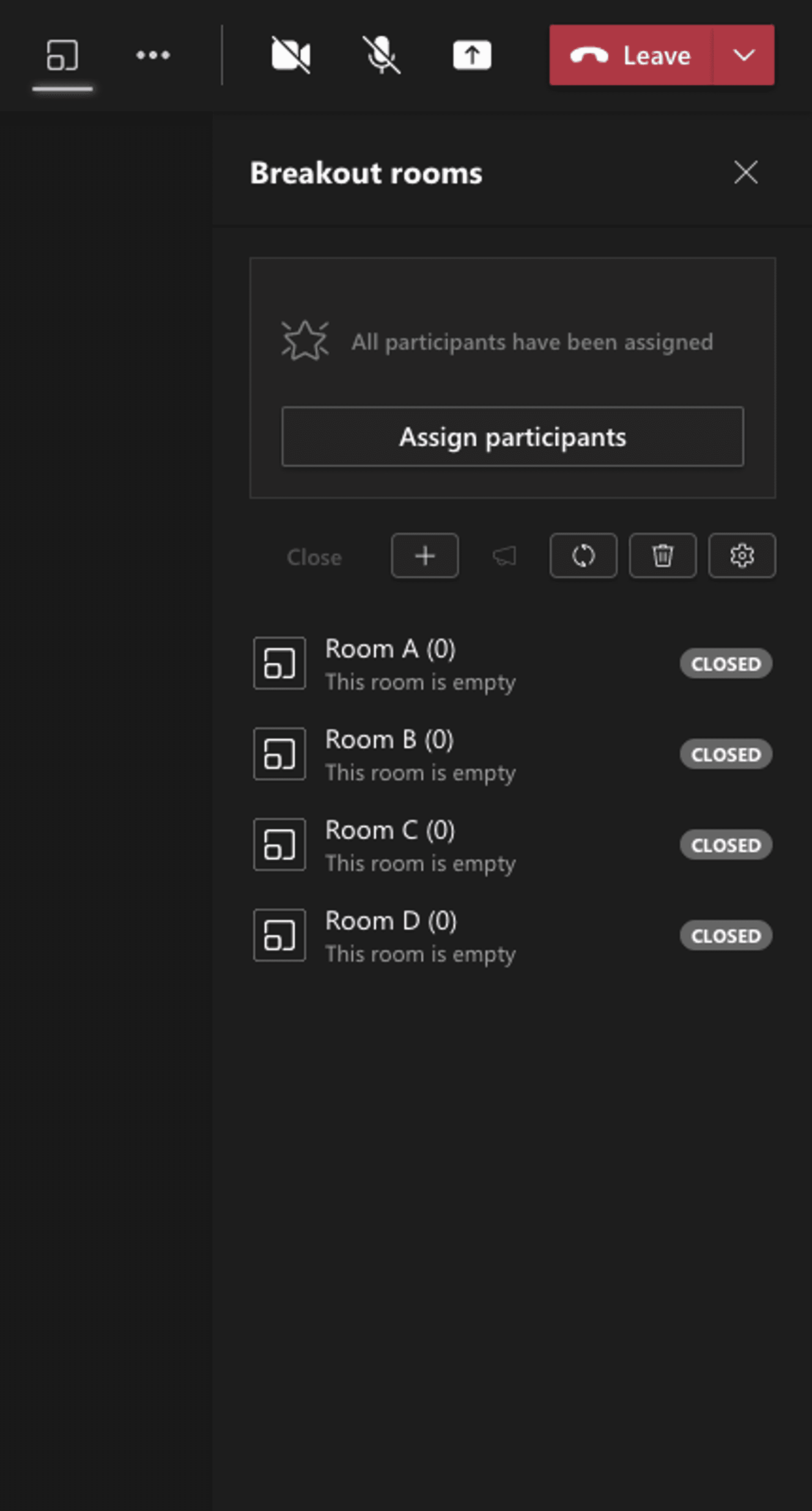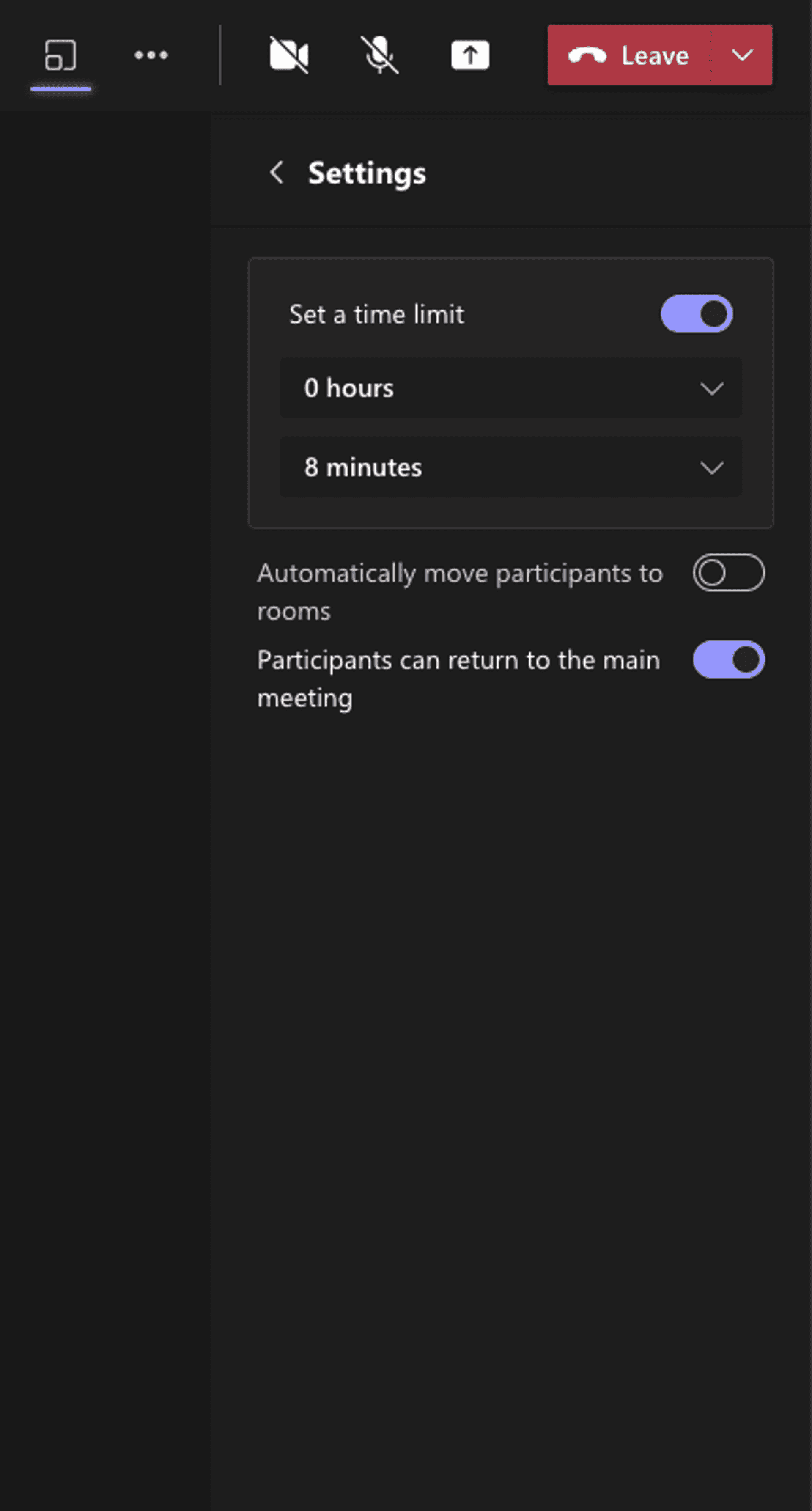 - Agree a suitable duration for each round. I found five minutes too short and 10 minutes quite loose — eight minutes seemed about right. MS Teams has a setting for enforcing this with a countdown timer in each breakout room.